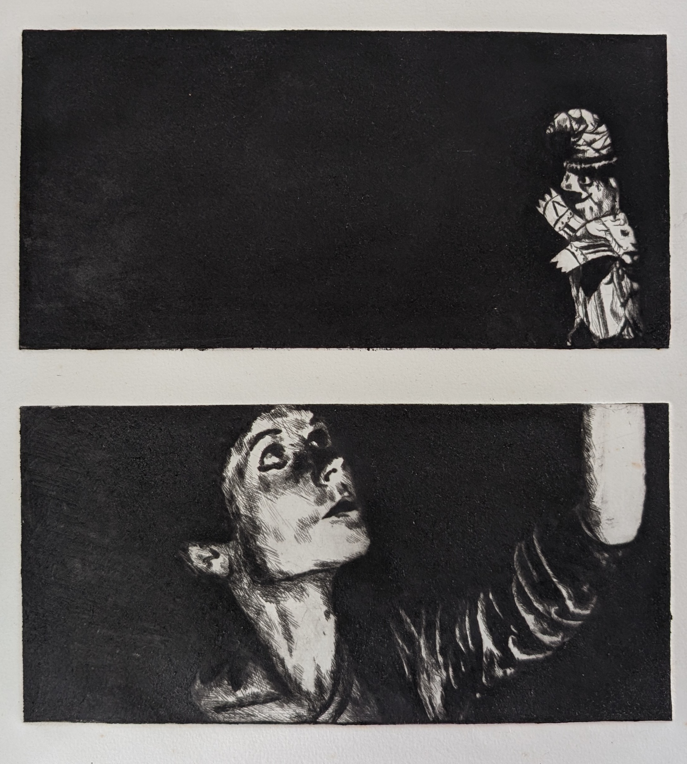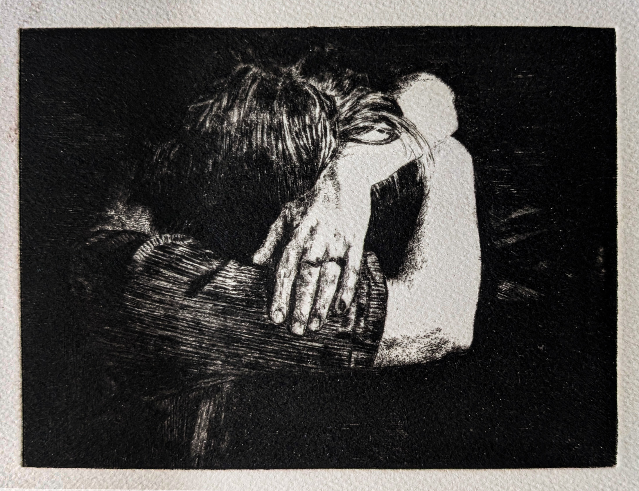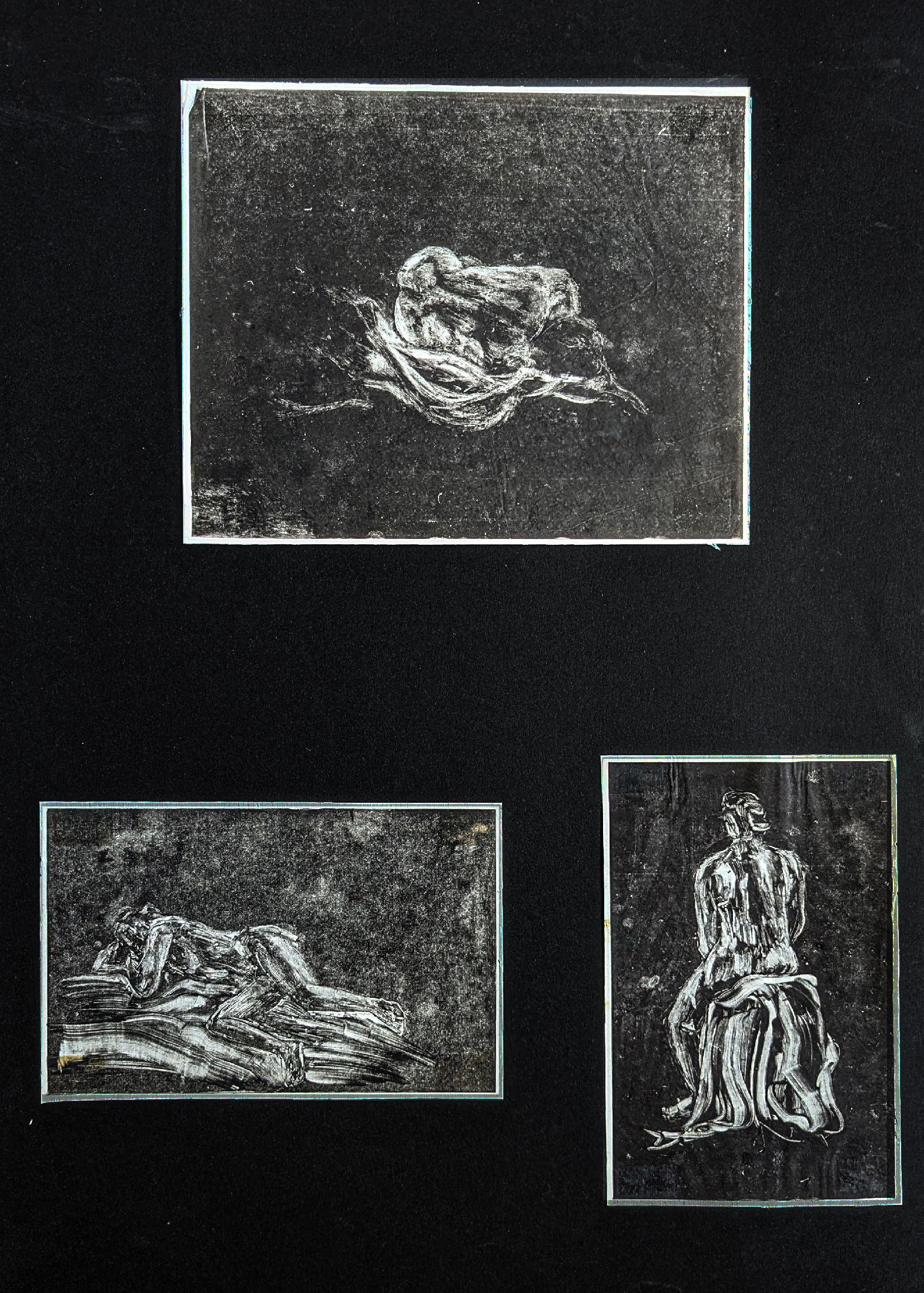 The ones that stuck with me are pencil on paper, drypoint etching and soft pastels chalk,