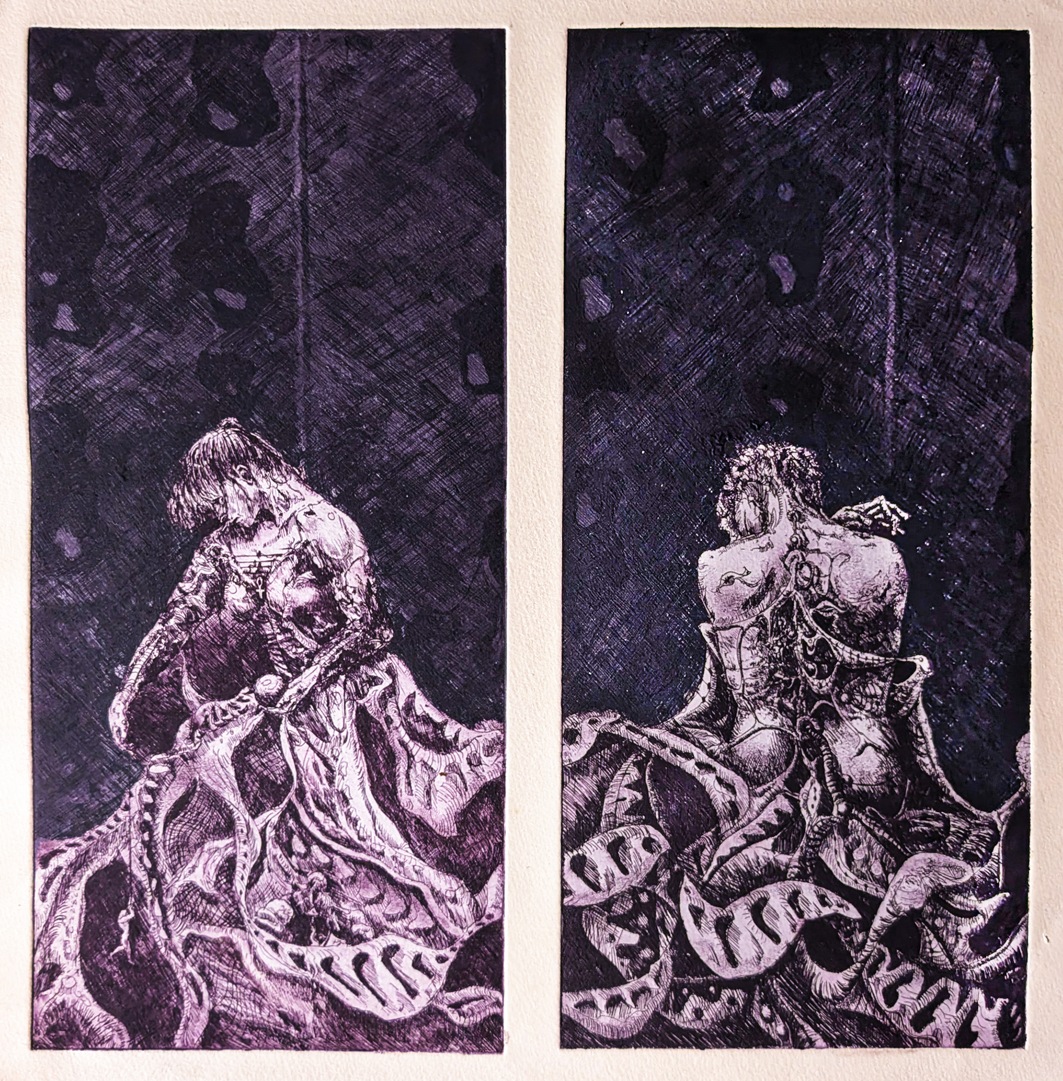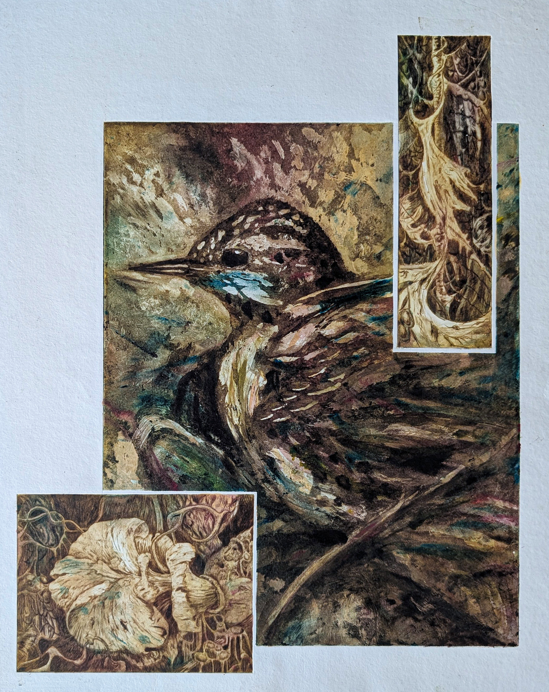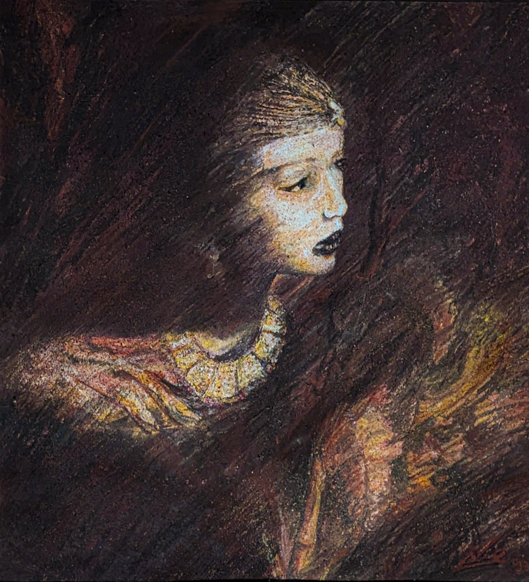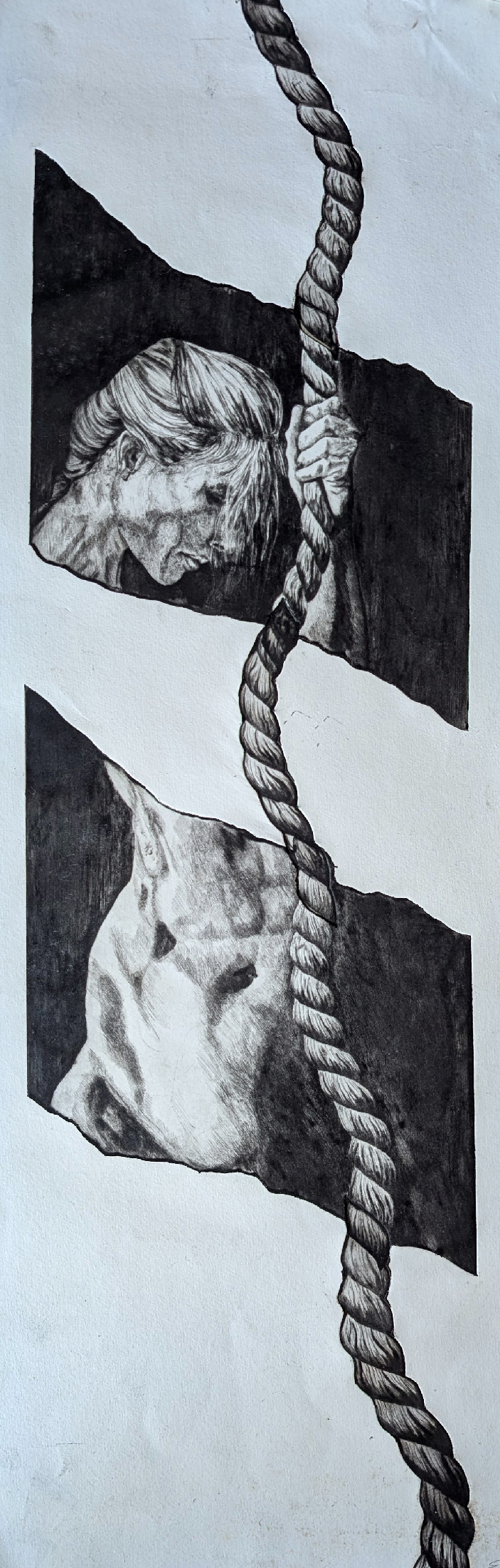 The ones that stuck with me are pencil on paper, drypoint etching and soft pastels chalk,